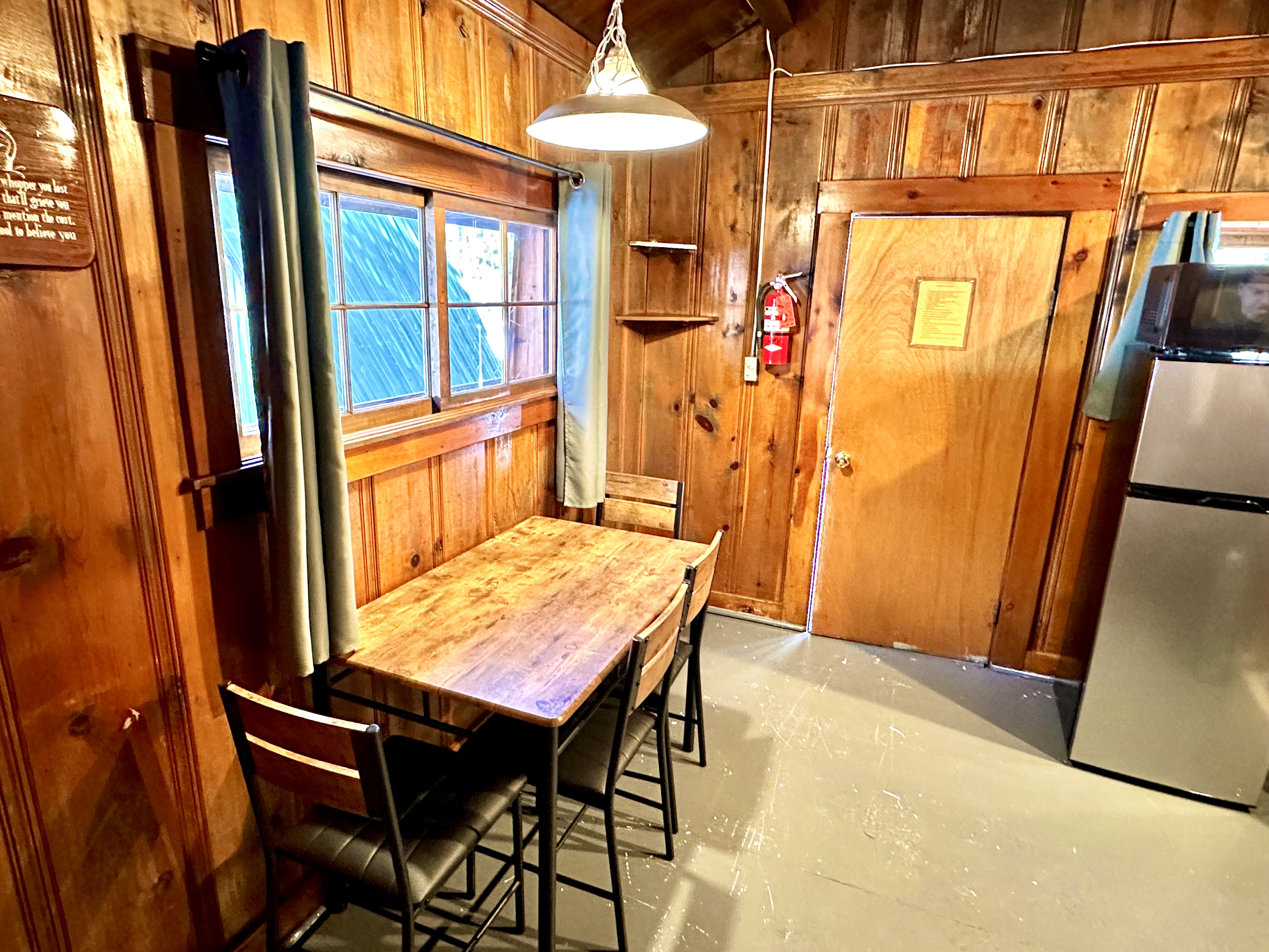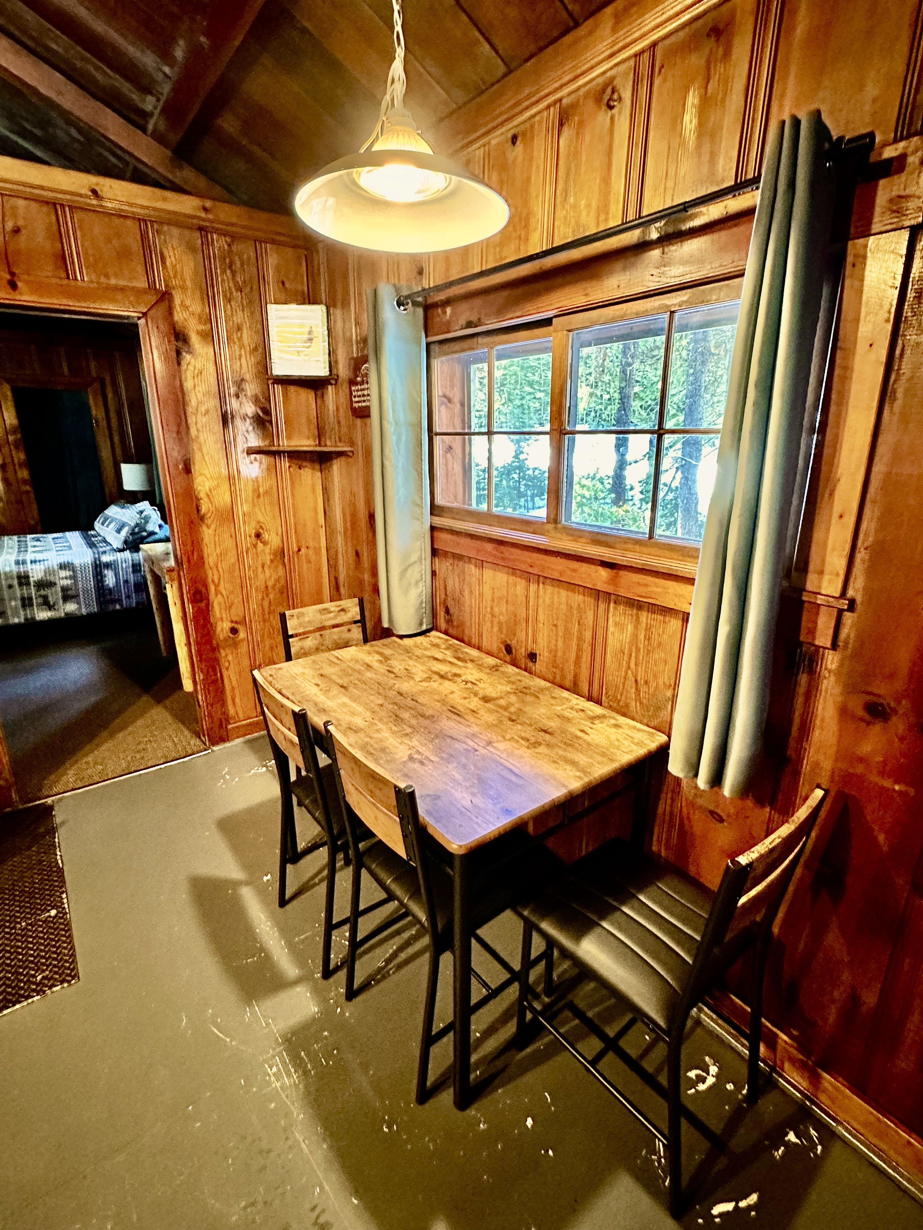 With a cozy wood stove, the Jay cabin is a small bungalow, backing right up to the forest. One room sleeps up to four people, with two double beds. It also has a small kitchen and a private bathroom with shower. Firewood and linens are provided.