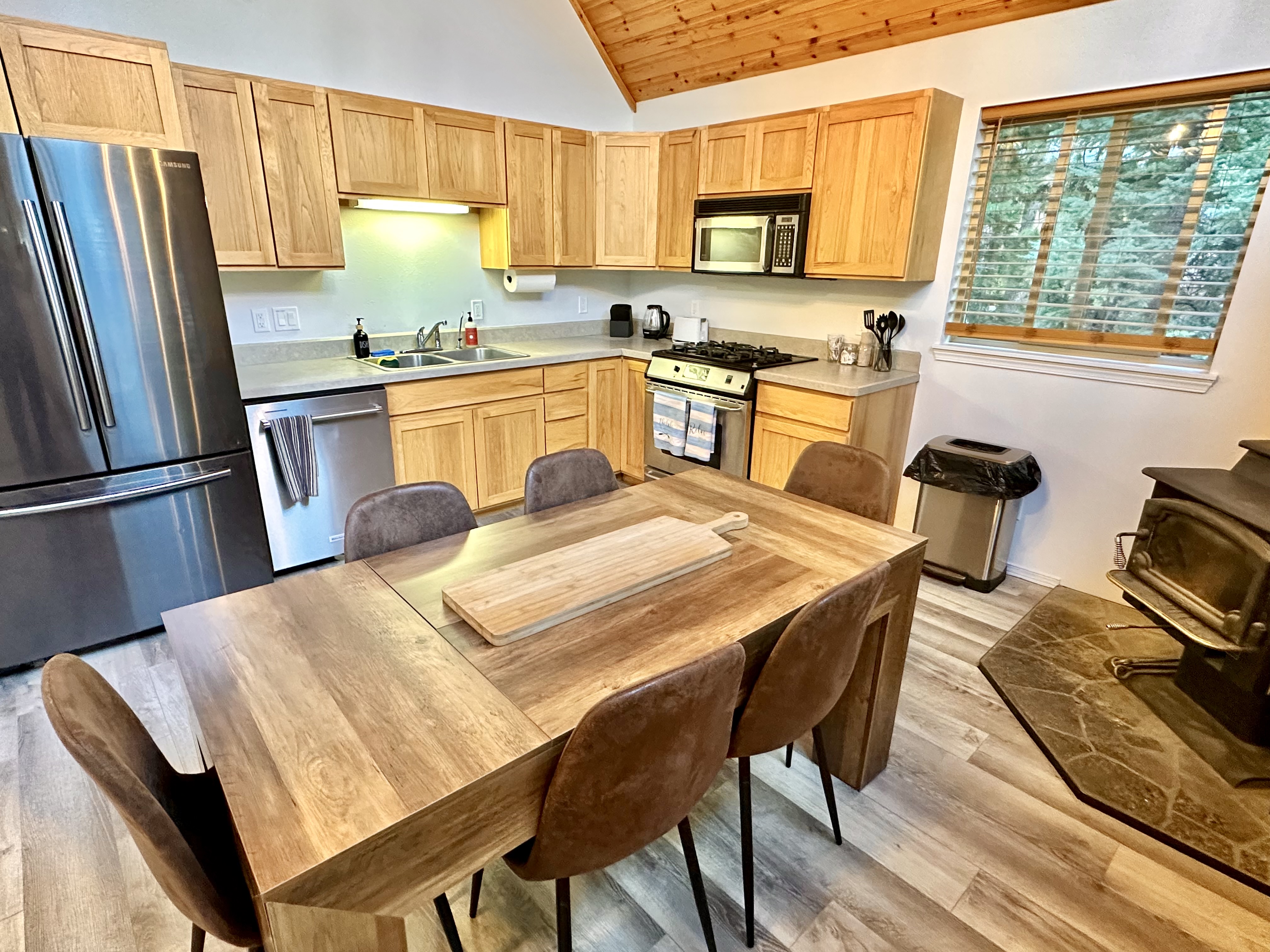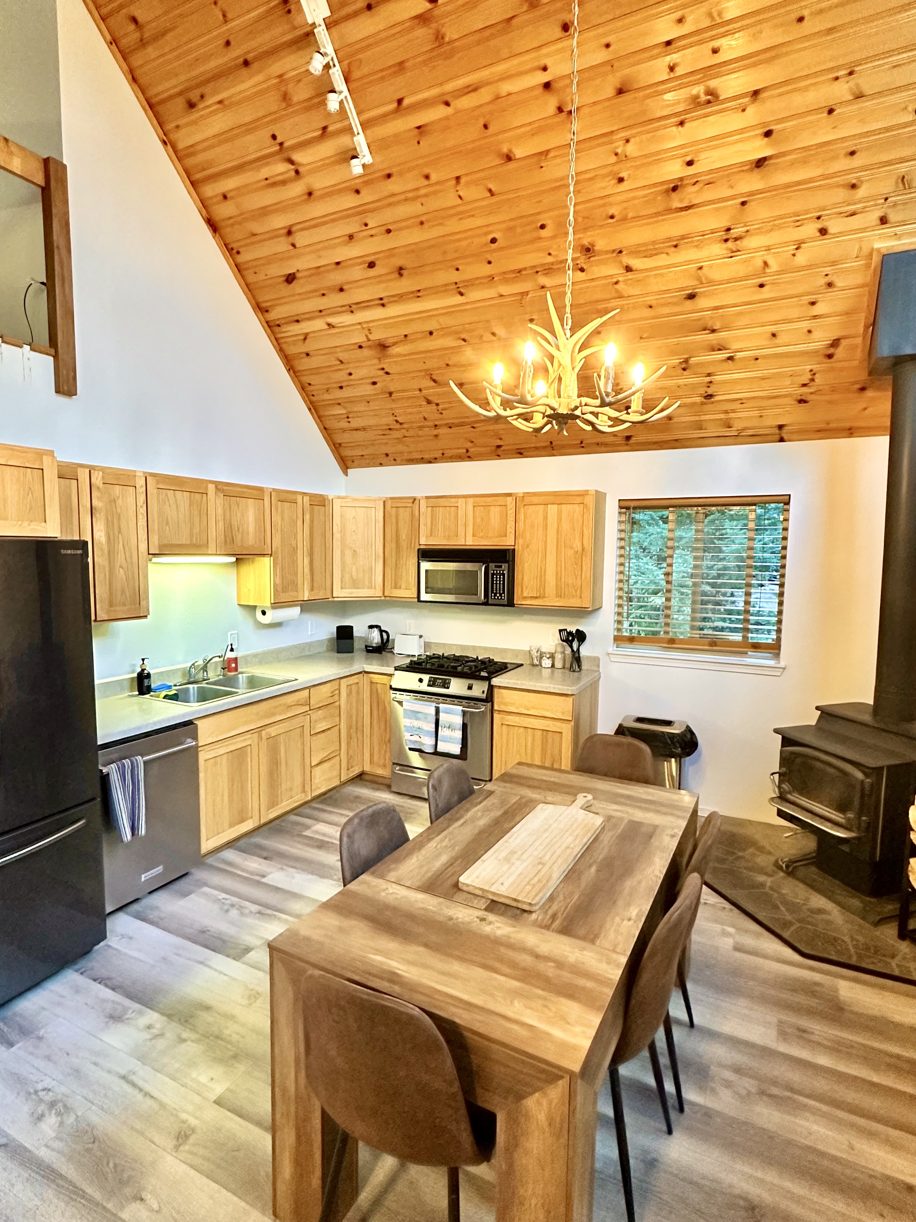 Are you looking for a more modern touch at Paulina Lake Lodge? This former owners' cabin has been completely remodeled in summer 2025. This grand A-frame style cabin features a large open living area/dining area/full-kitchen and 2 queen bedrooms on the lower level, along with a large bathroom. Head up the stairs to a massive open-lofted king suite, with views to the below living area. A large private deck and hot tub room make this cabin stand out from the others. Just steps to the lake! This cabin sleeps 6 persons. No pets, please.