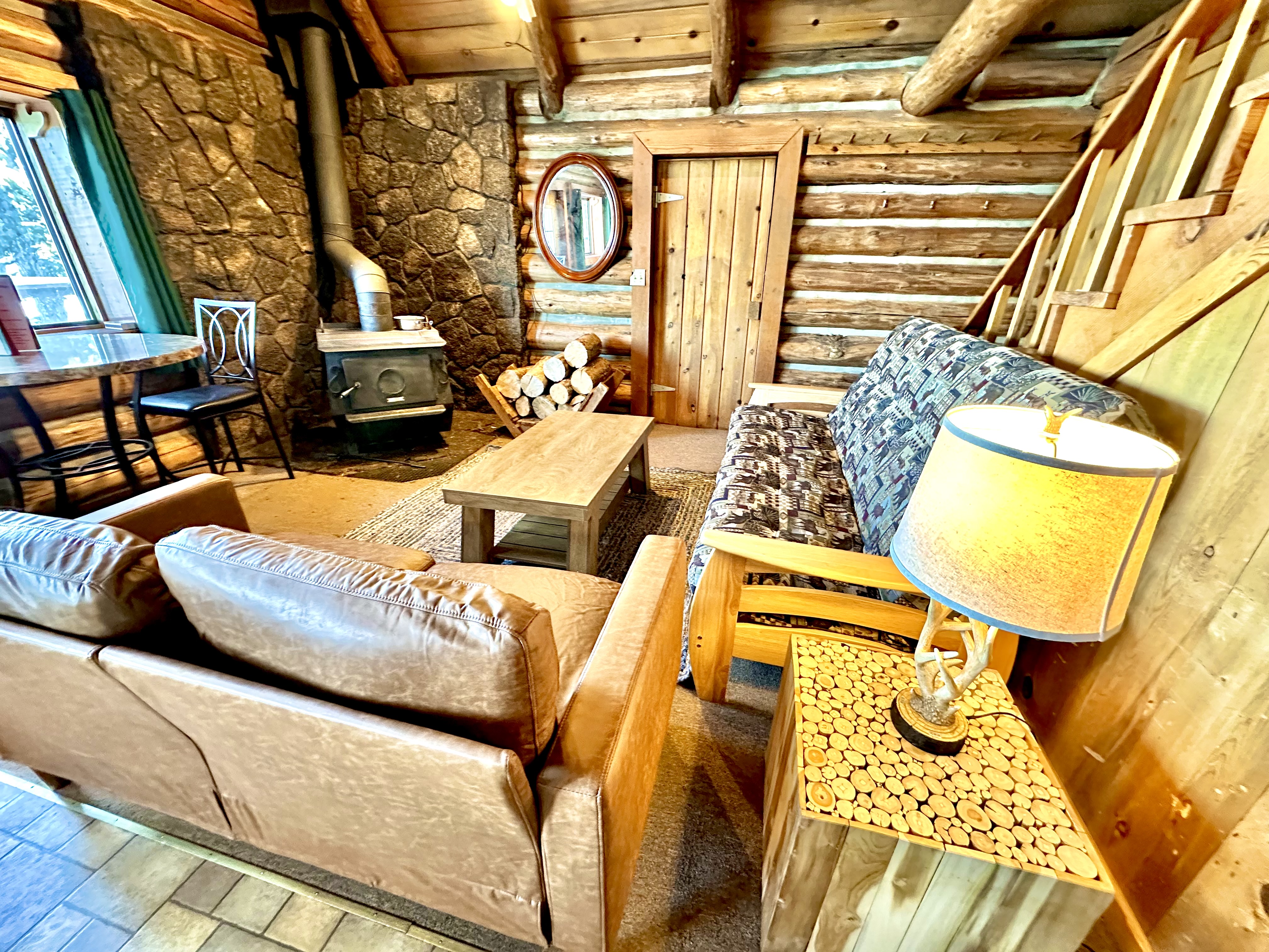 The Snowbird cabin is a spectacular lakefront A-frame accommodation that includes two bedrooms, one with a king bed and the other with one queen bed. The loft has two queen beds and there is a futon in the living room. Snowbird has a full kitchen and a private bath with huge walk-in remodeled shower. Lakefront deck is just steps to the lake! Fantastic sweeping lake views!